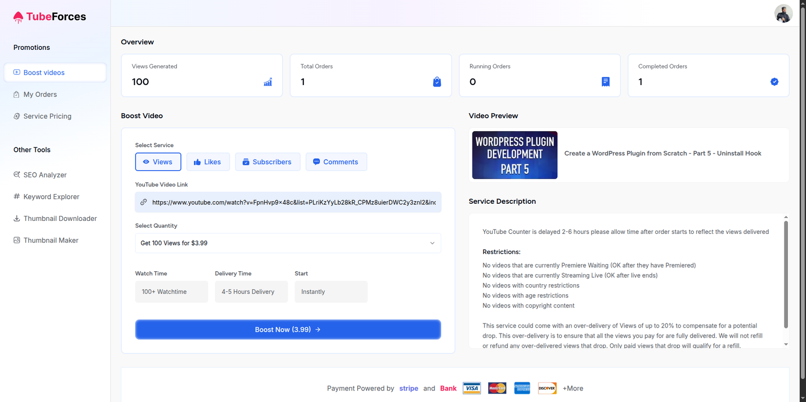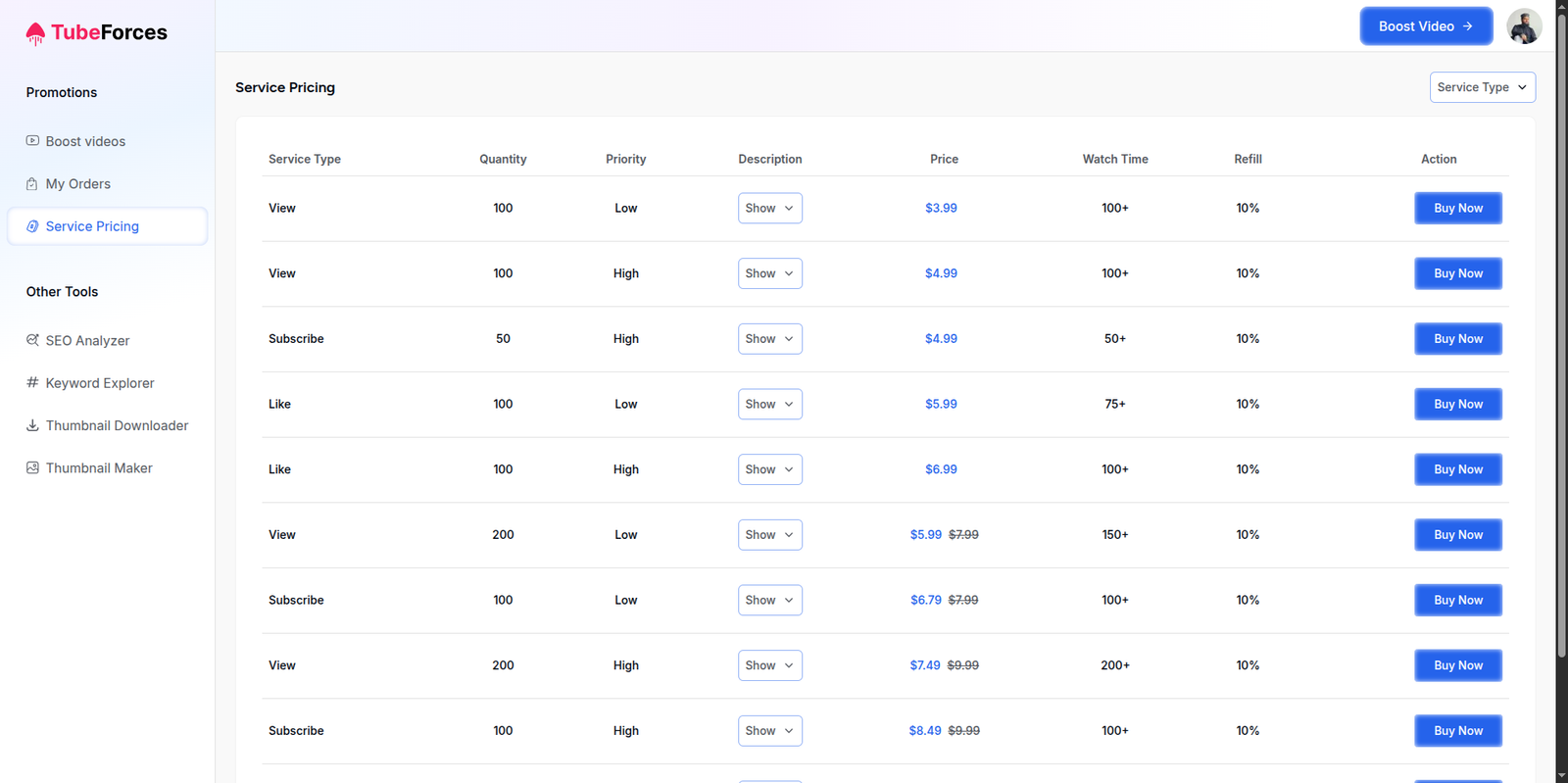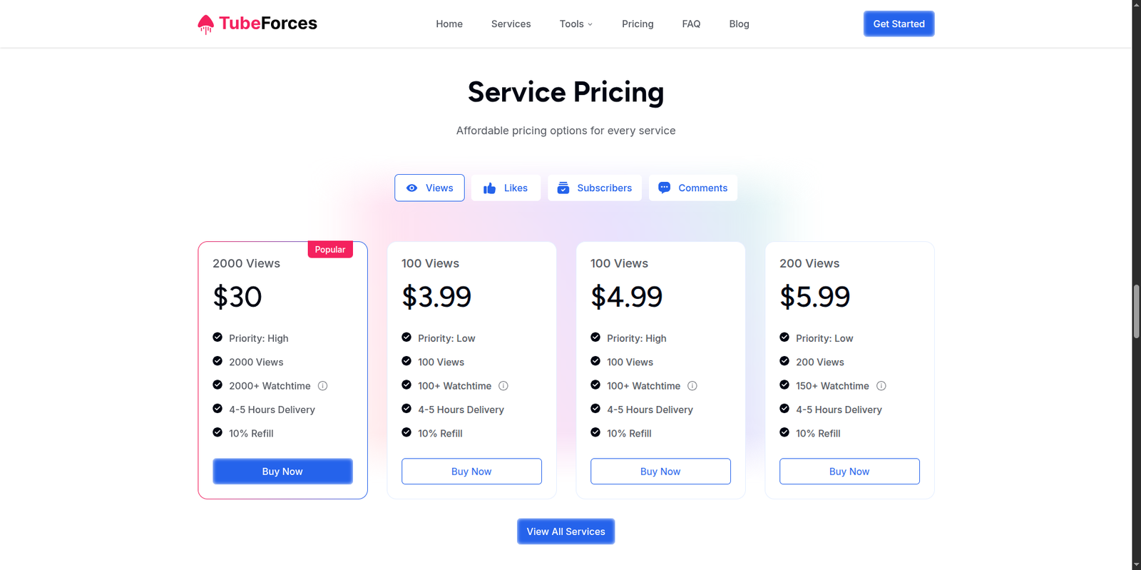 TubeForces is a modern digital growth platform built with Next.js, designed to help YouTube creators enhance engagement through structured service offerings such as views, likes, comments, and subscriber growth. The project focuses on high performance, fast page rendering, and SEO-friendly architecture using server-side rendering and optimized routing.